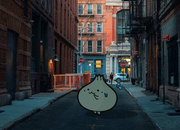 ビルの谷間で