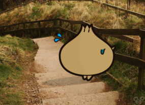 向こうからおじさんが曲がってくるぽよ